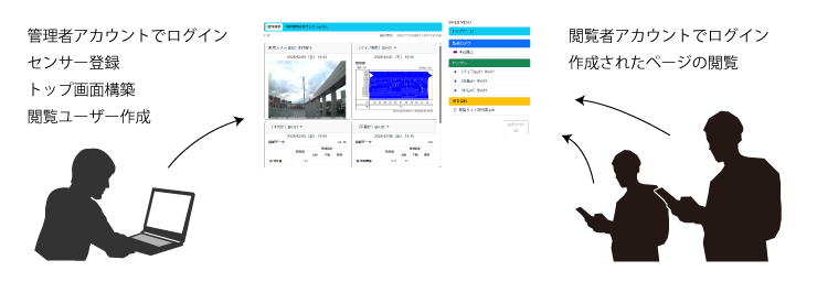 本システムは、管理者ページで各種設定を行う「管理ユーザー」と生成されたページの閲覧のみを行う「閲覧ユーザー」に分かれます。